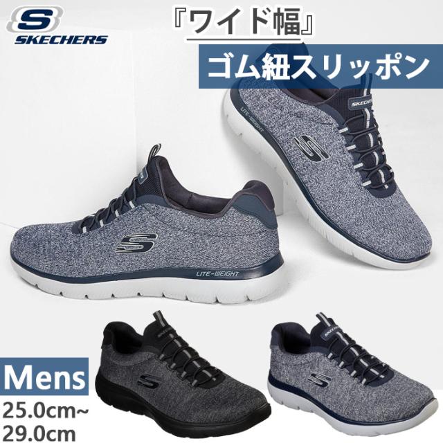 幅広 ワイド スケッチャーズ メンズ サミット ファントム スニーカー シューズ ローカット ゴム紐靴 ブラック 黒 ネイビー 送料無料 SKECHERS 52813W