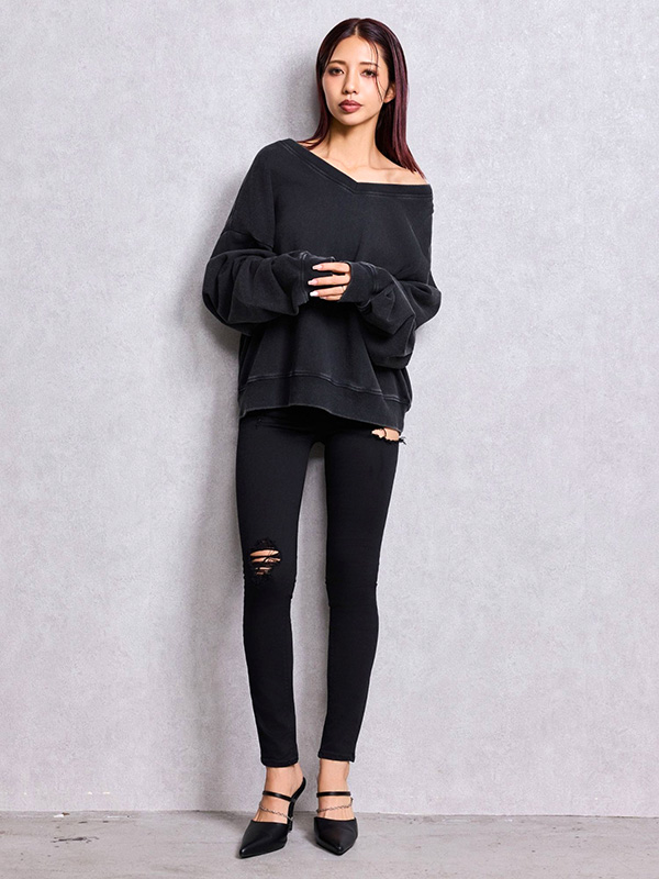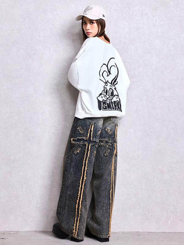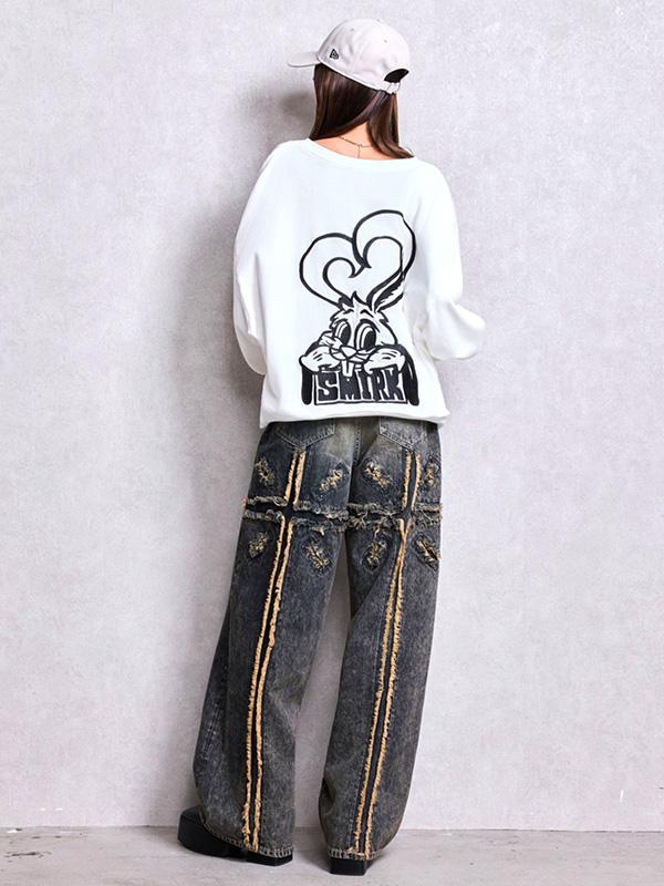 GYDA ジェイダ スウェット トレーナー 裏毛 BUNNY Vネック ディテール SMIRK BUNNYスウェットトップス 072612709801 V-neck SMIRK BUNNY sweatshirt