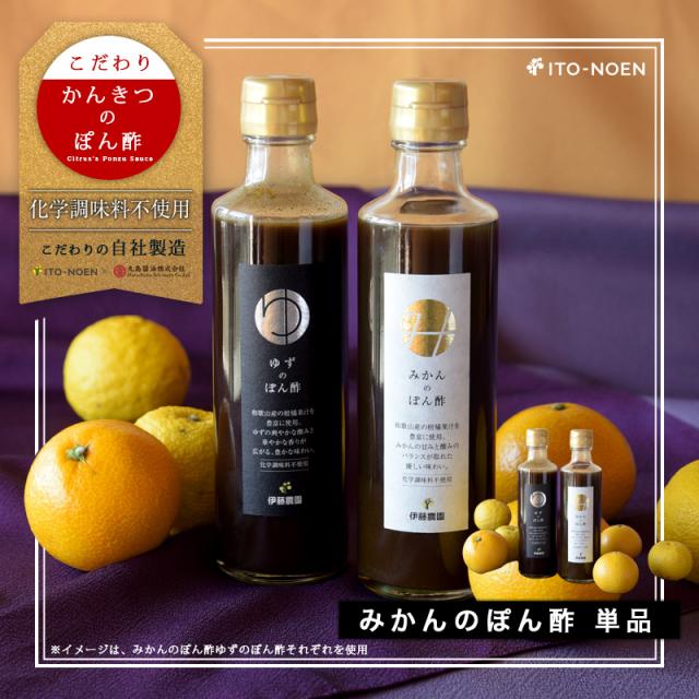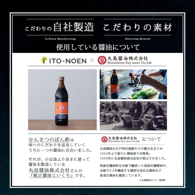 香川県小豆島のしょうゆメーカー、丸島醤油の無添加醤油を使用し、伊藤農園のオリジナル果汁をベースに作ったこだわりのぽん酢です。