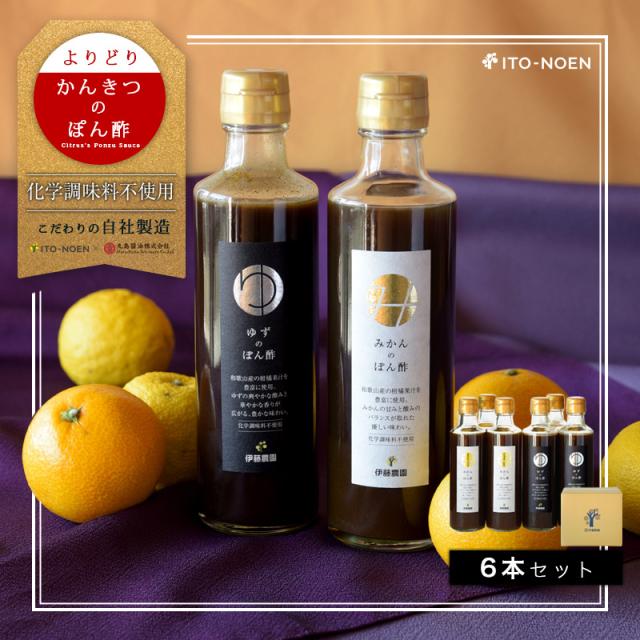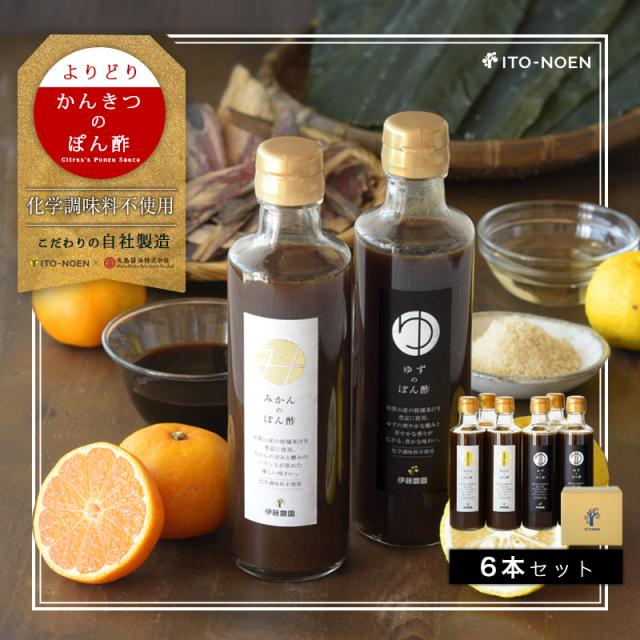 ぽん酢 6本入り 無添加 ゆず 化学調味料不使用 蜜柑 柚子 かつお 鰹 こんぶ 昆布 出汁 醤油 丸島醤油 鍋 豚しゃぶ 湯豆腐 冷奴 うどん 調味料 和歌山産 柑橘 果汁 使用 伊藤農園