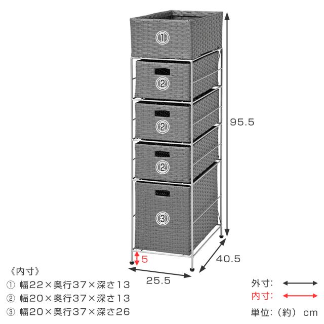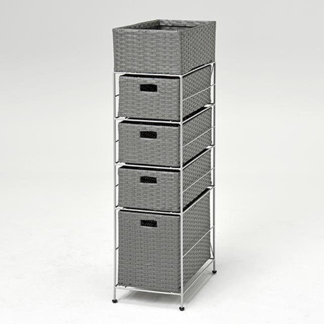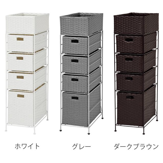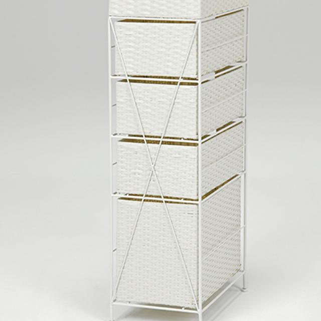ランドリーチェスト 4段 幅25.5cm かご付 スチール ポリエチレン ( ラタン調 ランドリー チェスト ラック 防水 アジアン 収納 かご ラタン風 洗濯 ランドリーラック 撥水 収納ラック 樹脂製 )