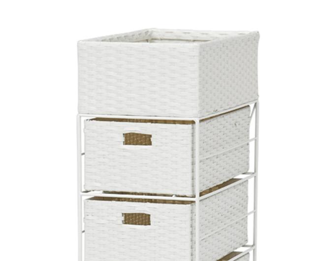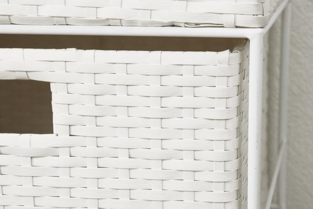 お手入れのしやすい樹脂製なので、水周りでも便利にお使いいただけます。通気性の良いラタン調のデザインで、衣類やタオルの収納にもおすすめです。