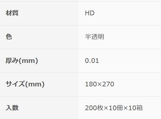 | 0.01mm厚の規格袋(ポリ袋)です。 |
