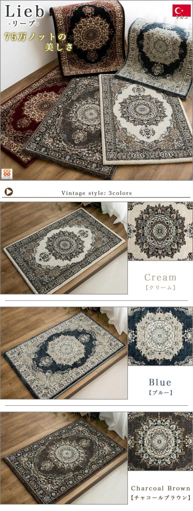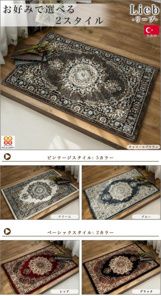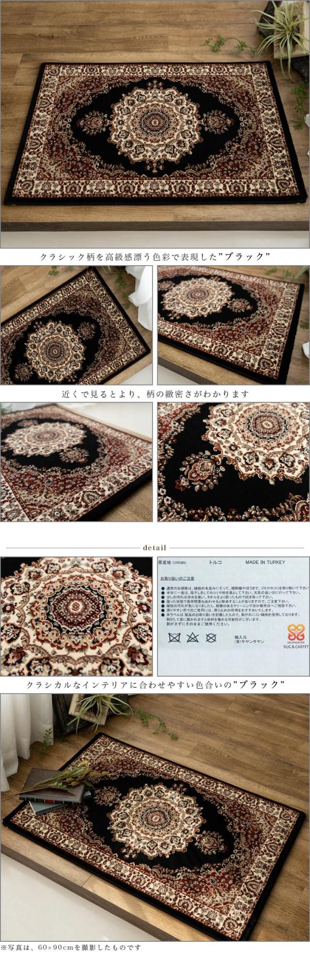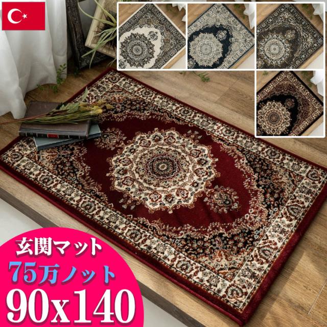 玄関マット 90x140 アンティーク調 高密度 75万ノット おしゃれ ペルシャ 絨毯 柄 クラシック ブラック ブルー ブラウン クリーム アイボリー レッド 屋内 室内 トルコ ラグ マット アクセントマット アクセントラグ じゅうたん