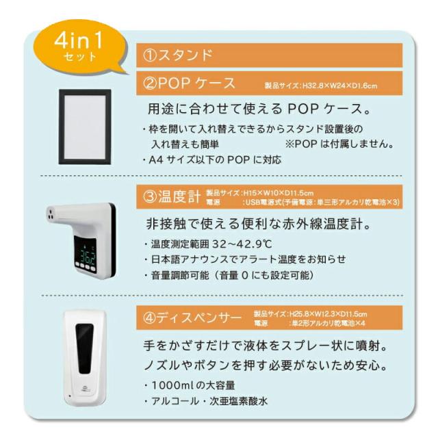 非接触温度計 検温 検温器 検温計 検温機 温度の計測 検温 サーモチェッカー 温度計 表面温度 温度計測 計測 非接触式電子温度計 アルコールディスペンサー 消毒 手指の消毒 ディスペンサー 消毒液 アルコール アルコール消毒 次亜塩素酸水 非接触 音声 自動音声 セット スタンド POP ポップ スタンド触らずに 触れずにできる ノータッチ サーモ ビル 商店 店 会社 オフィス 塾 学校 スクール レッスン 教室 入口 フロント エントランス 室内用 屋内用 室内 屋内 温度計ディスペンサースタンド ディスペンサースタンド 温度計スタンド ディスペンサー スタンド 4in1 アルコール 次亜塩素酸水 YD-4014 YD4014 yd-4014 yd4014 おすすめ 人気 効果 比較 ランキング 女性 男性 誕生日 母の日 父の日 敬老の日 クリスマス ギフト プレゼント 贈り物 レビュー 評判 通販 口コミ google グーグル yahoo ヤフー LINEショッピング 楽天市場