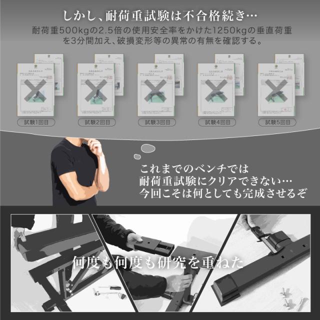 また、歪みにくく縦に強いフレームで耐荷重500kgを実現。
