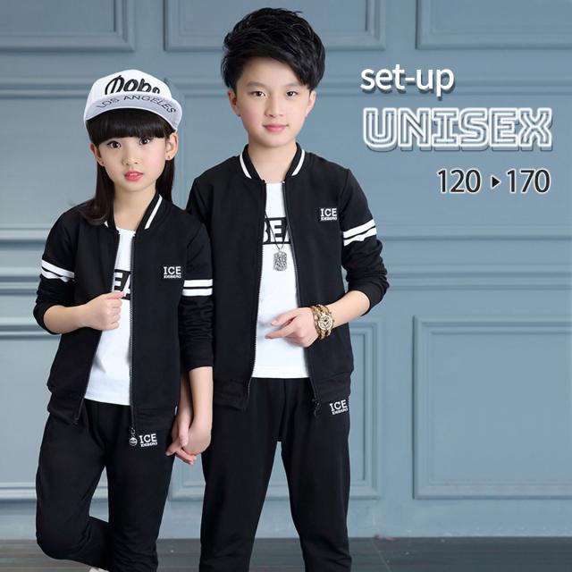 子供服 ジャージ セットアップ 男の子 女の子 ユニセックス 韓国 風 キッズ 上下 Tシャツ ロンT ファッション 秋冬 3点 セット おしゃれ かわいい カジュアル 美脚 細身 スポーツ 運動 長袖 黒 グレー 赤 部屋着 ルームウェア 子ども ジュニア