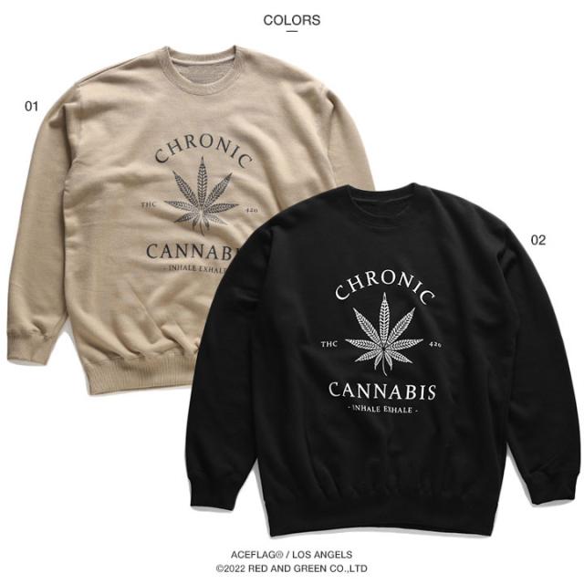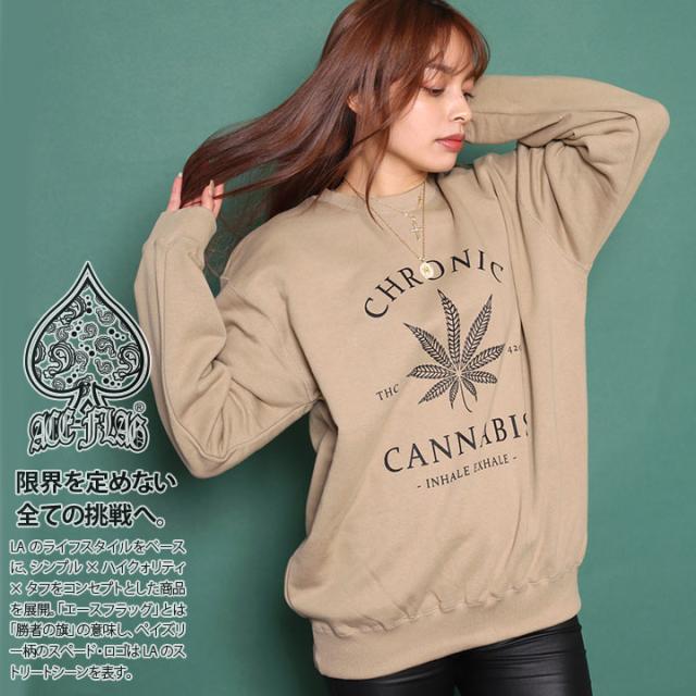ACEFLAG トレーナー ブランド スケボー 長袖 スウェット 裏パイル レディース 春秋冬用 黒/カーキ 大きいサイズ エースフラッグ トップス カンナビス 大麻 ヘンプ マリファナ 服 AF-TL-SW-026