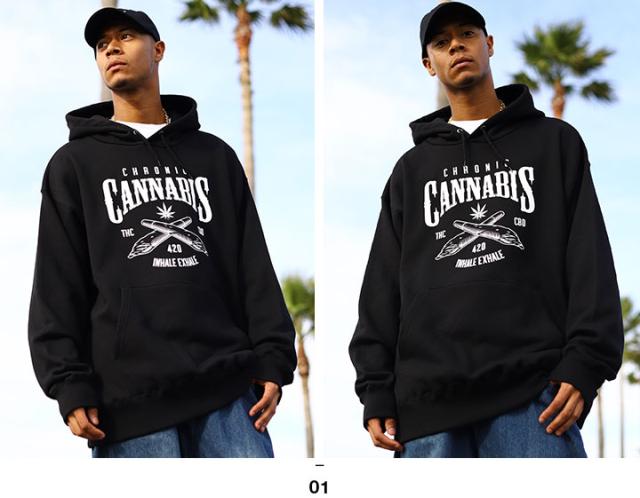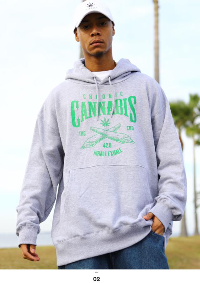 「Chronic Cannabis」をドロップしたフードパーカー。