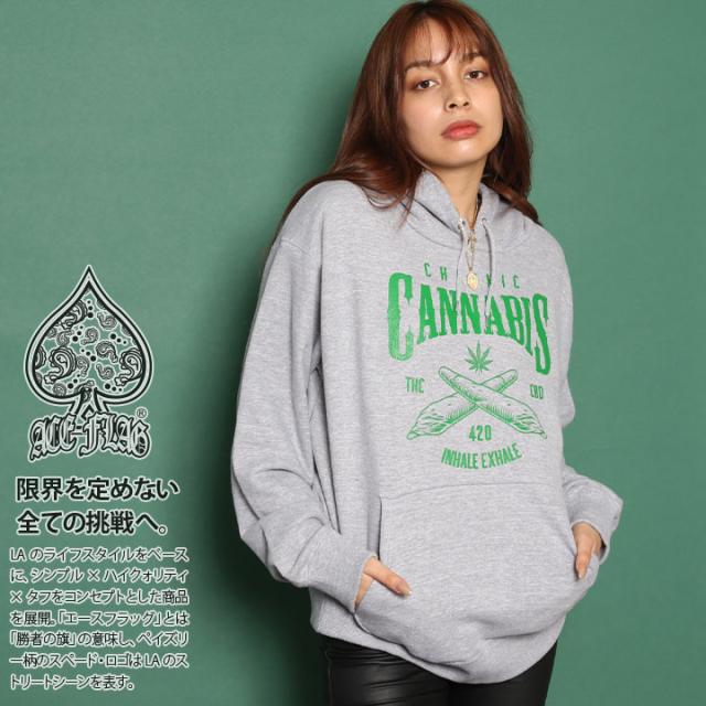 ACEFLAG パーカー ブランド スケボー フーディ 長袖 スウェット 裏パイル レディース 春秋冬用 黒/グレー 大きいサイズ エースフラッグ トップス 大麻 ヘンプ マリファナ ジョイント 服 AF-TL-PA-028