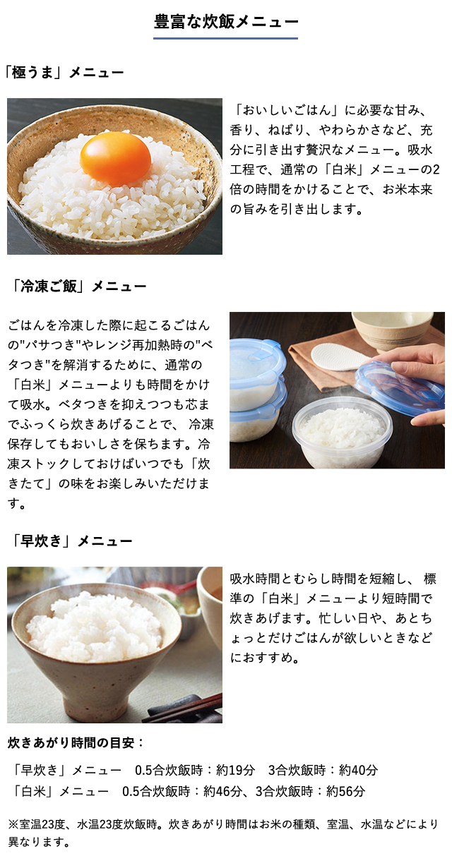 4)「冷凍用ごはん」メニュー機能搭載