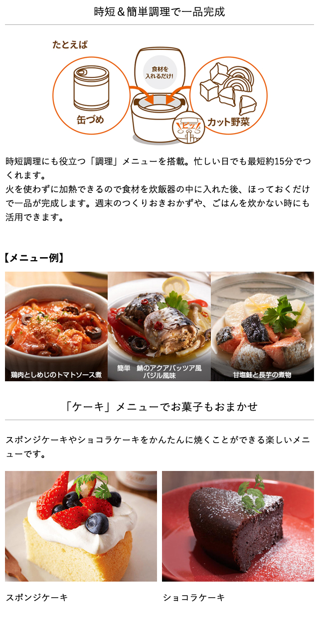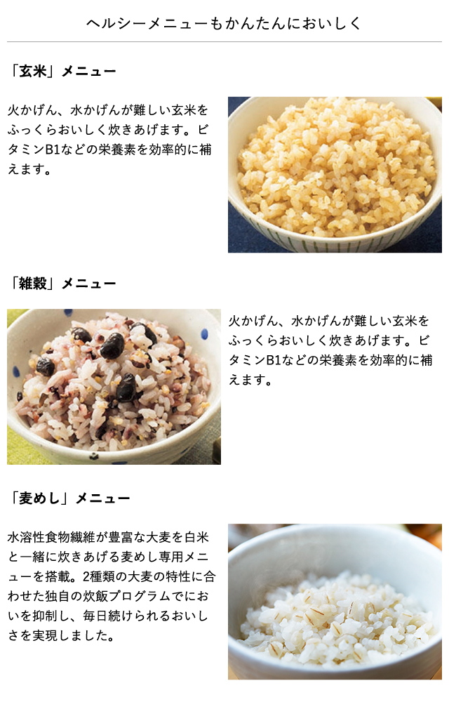 土鍋釜で炊くごはんのおいしさに近づけるため、土鍋に含まれている素材を金属釜にコーティングしました。熱をムラなく均一に広げてお米の一粒一粒まで、ふっくら炊き上げます。