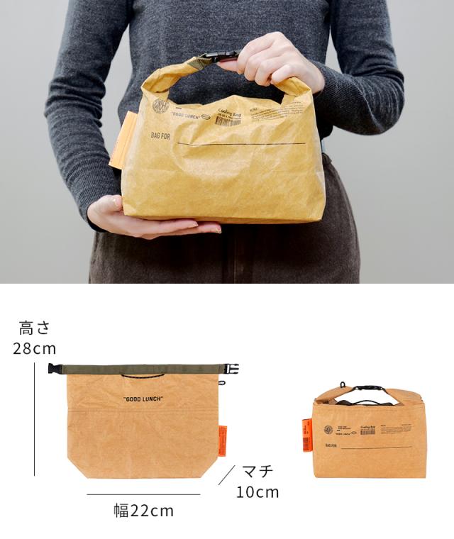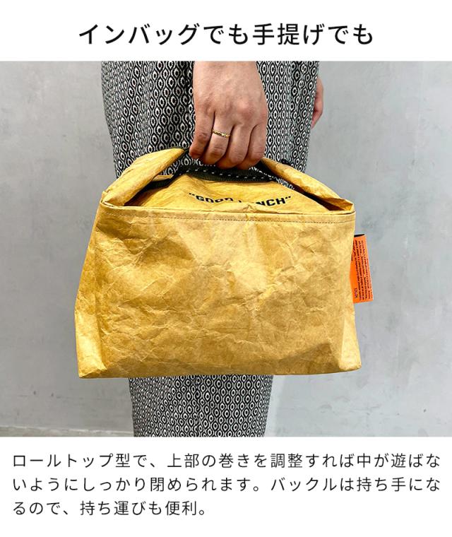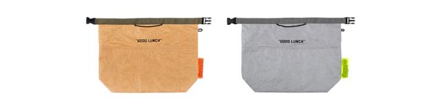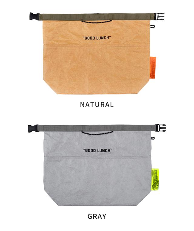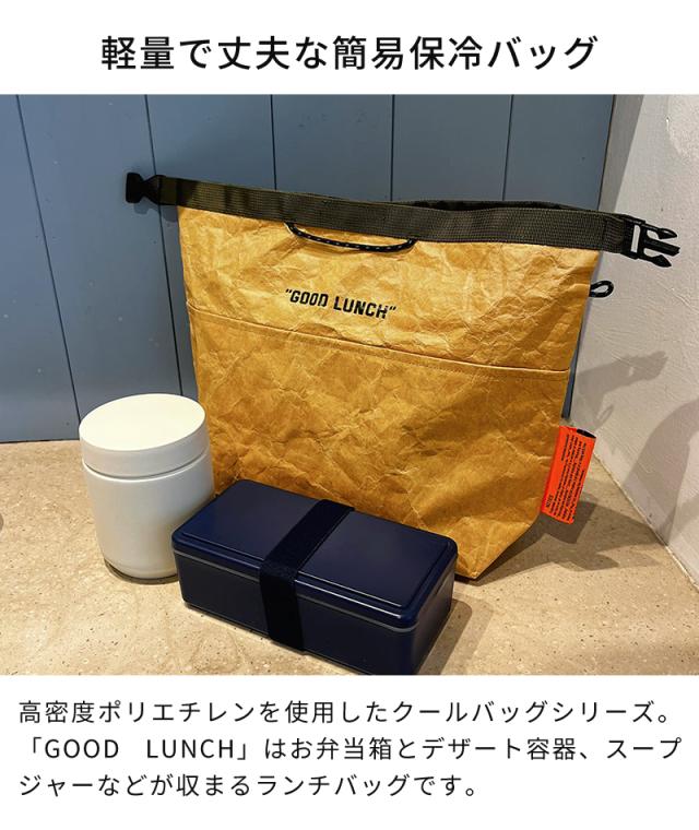 高密度ポリエチレンを使用した、WEEKEND(ER)のクールバッグシリーズ。「GOOD LUNCH」はお弁当箱とスープジャーが収まるランチバッグ。ロールトップ型で、中の容量に合わせてしっかり閉められます。インバッグでも手提げでも持ち歩けるデザインで、日頃のお買い物やレジャーにもお使いいただけます。