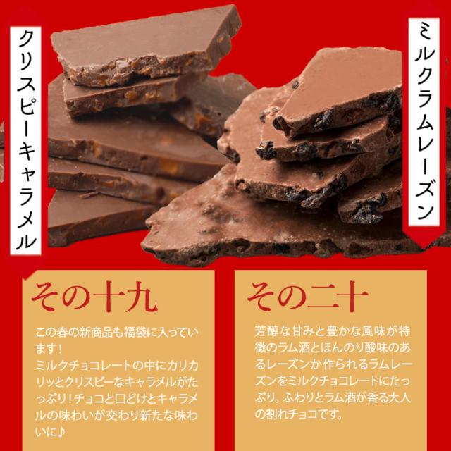 - いつも1kの12種の割れチョコを注文していましたが、今回初めて福袋をいただいてみました。上から順番に食べているので、今のところ初めての味は粒々イチゴだけですが、これからどんどん新しいのが出てくると思う...
