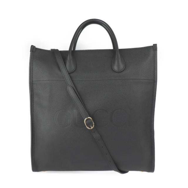美品 GUCCI グッチ ロゴ ミディアム トートバッグ 674850 ショルダーバッグ エンボスレザー ブラック 2WAY ハンドバッグ 2022年 【本物保証】