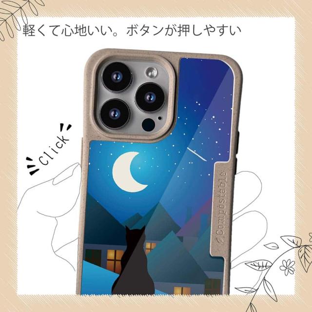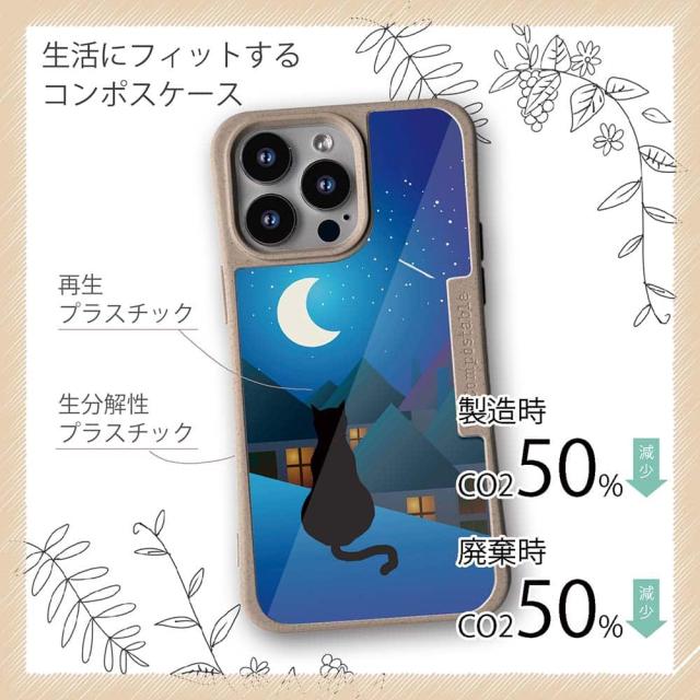 コンポスケース & 着せ替え デザインシート セット Google Pixel9a Pixel9 Pro XL Pixel8a Pixel8 Pro Xperia 10 V ケース 背面 生分解性 4色 猫 ネコ 月と猫