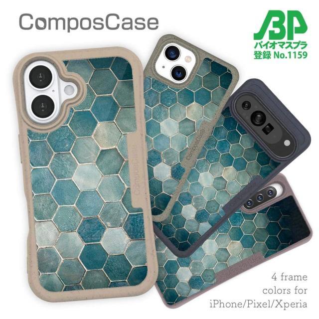 コンポスケース & 着せ替え デザインシート セット Google Pixel9a Pixel9 Pro XL Pixel8a Pixel8 Pro Xperia 10 V ケース 背面 生分解性 4色 トルコタイル風 ブルー