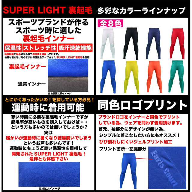 【メール便可】 アールズコート サッカー フットサル ウェア 裏起毛ロングスパッツ ロングインナースパッツ 防寒 EC-09
