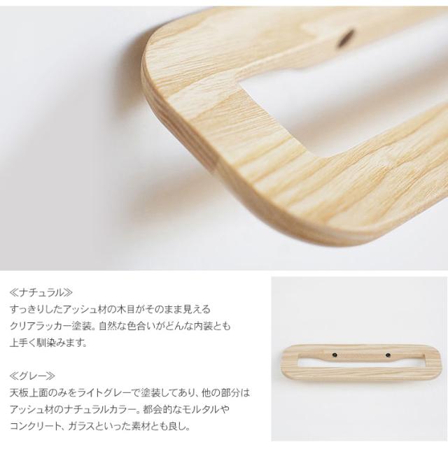 グレーは、上面のみをライトグレーで塗装してあり、他の面はすっきりしたアッシュ材のナチュラルカラー。都会的なモルタルやコンクリート、ガラスといった素材とも良し。