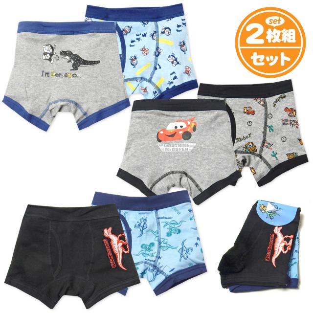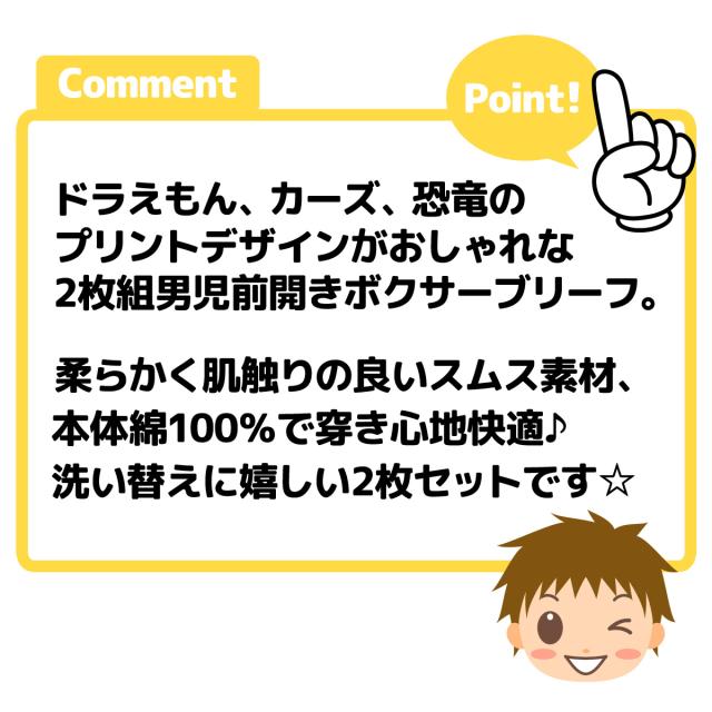 【送料無料】2枚組セット 男児 キッズ ボクサー ブリーフ 前開き ドラえもん カーズ 恐竜 本体綿100% 下着 yg-1688【メール便対応】