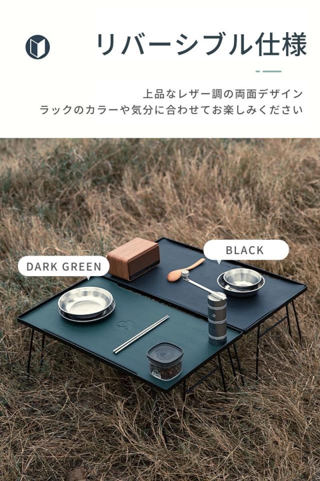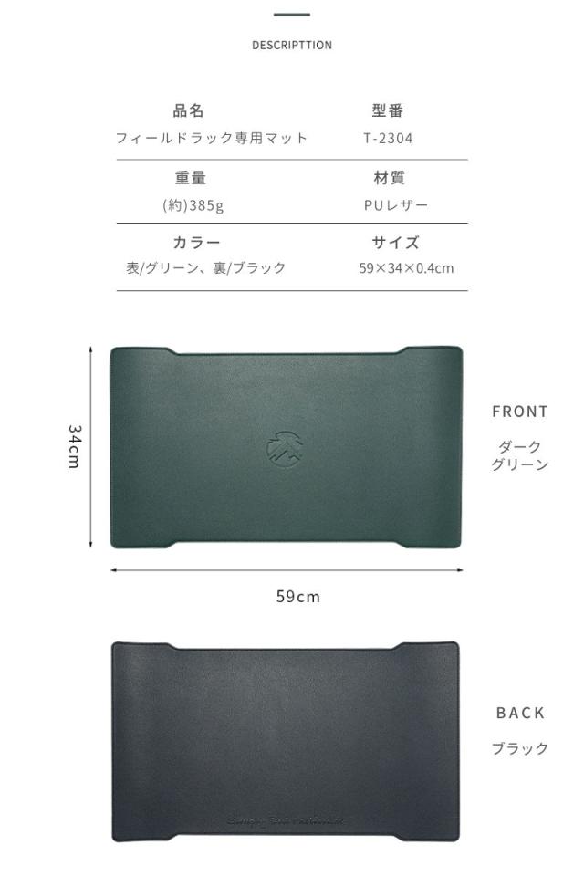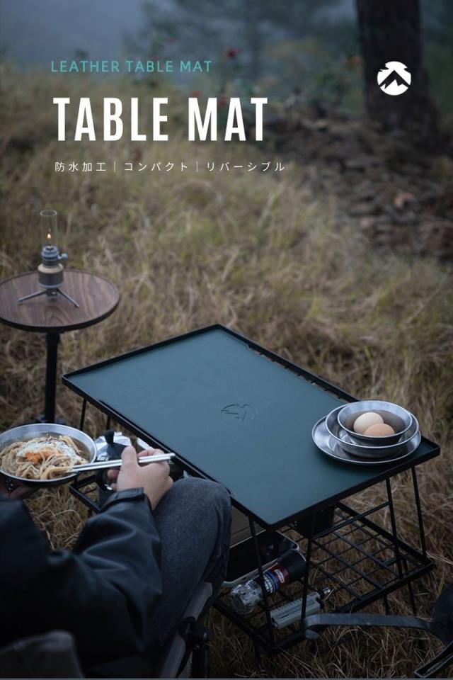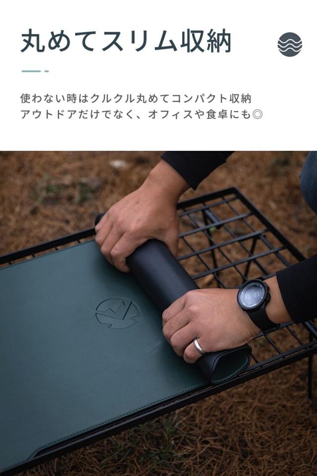 | 特徴 | ・フィールドラック だけでなく、多目的に使えるテーブルマット ・表面質感がまるでレザーのようでテーブルをキズや汚れからの保護はもちろん、ガス跡なども防ぐことができます ・裏面はブラックでリバーシブルにご使用可能 |