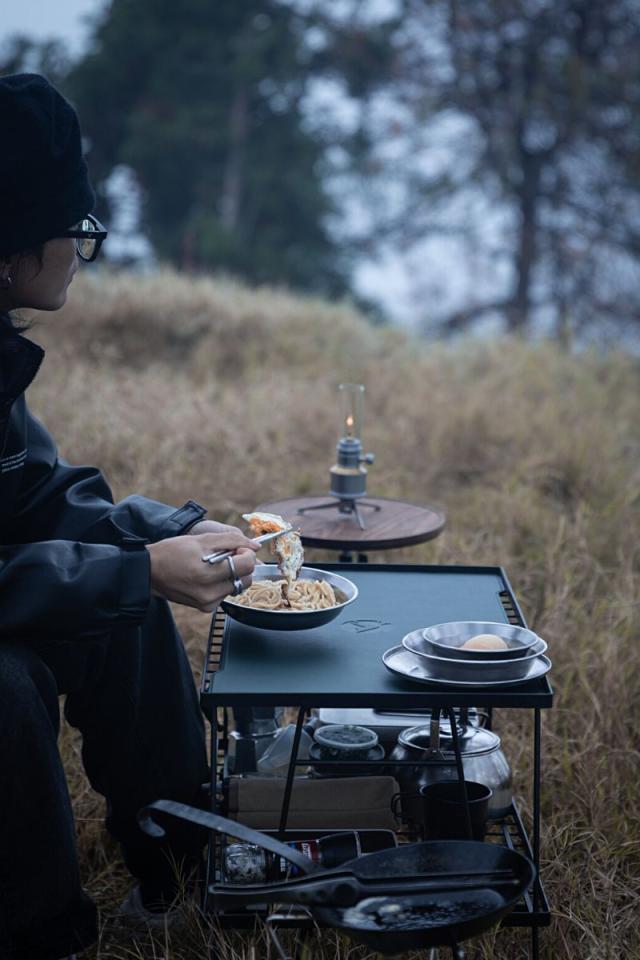 天板を追加することで、フィールドラックを簡単にテーブルへ変身し、カスタマイズできます。お皿や水気等が出るクーラーボックス等を置いたりできます。