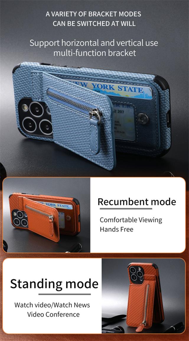 ケースの内側には便利なカードポケットを搭載しており、カードや名刺、小銭などを収納することが可能です。○横置きスタンド機能
