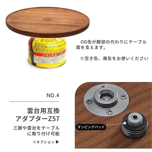 サイドテーブル テーブル 天板 スマートスタンド用 ウォールナット OD缶 口金 机 木製 ブラックウォルナット 北欧 キャンプ カメラ 三脚 雲台 カメラ三脚 DIY アダプター キャンピングムーン アウトドア Z01-T-Z57