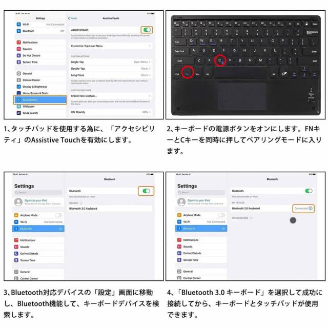 注:マウスパッド付のため、 ipad本体設定>アクセシビリティ>AssistiveTouch>マウスキー[ON]になっていることを必ずご確認くださいませ。