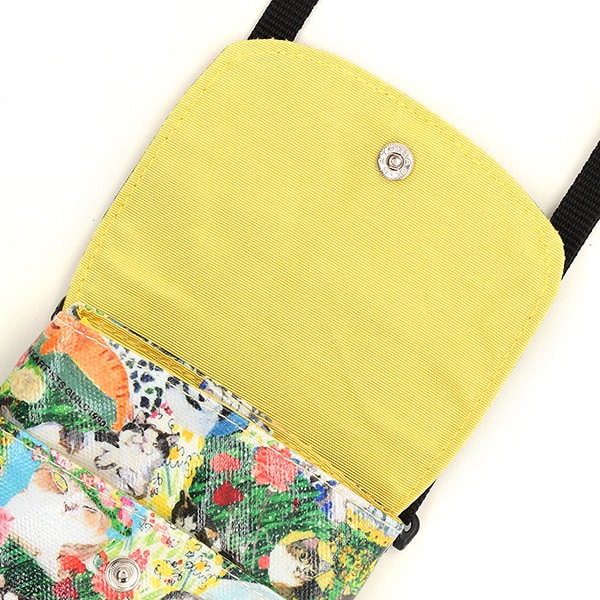 スマホポシェットは内装のテープを引っ張るとスマホが飛び出る便利な仕様!