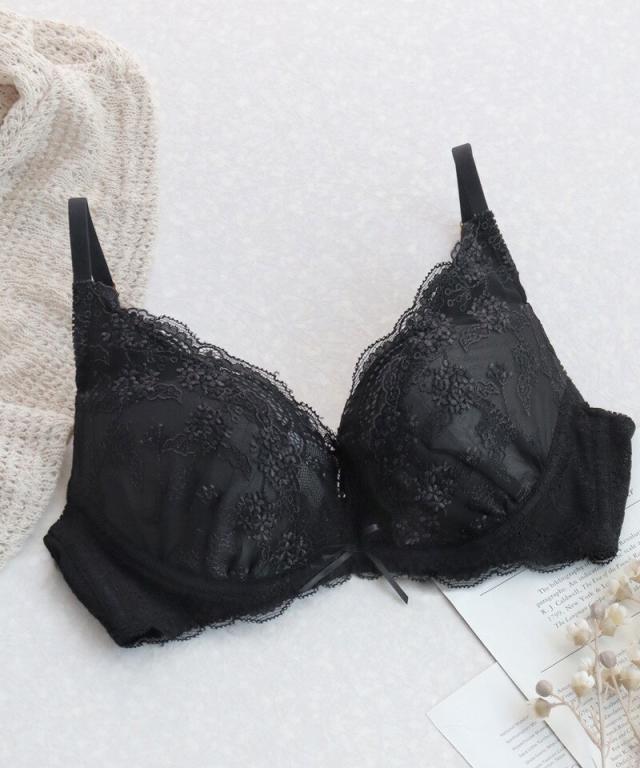 シックなカラーとバックにまでこだわったデザインで、補正ブラでありながら高級感のある一着。