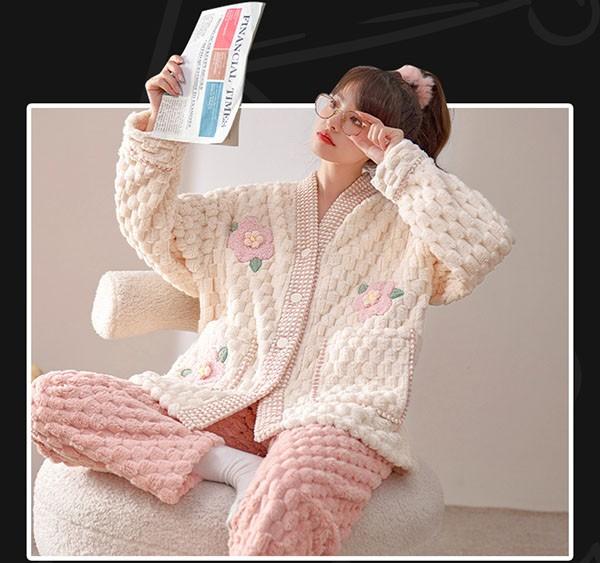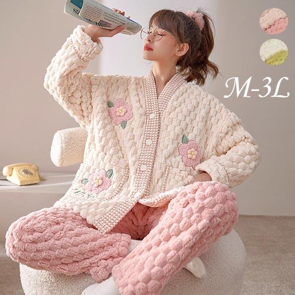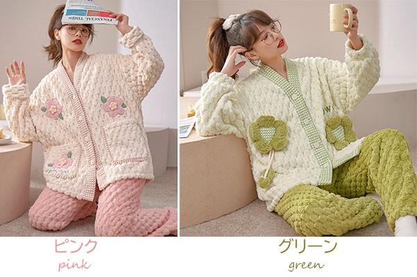 前開き 韓国 もこもこパジャマ レディース 暖かい フードなし モコモコ あったか 冬 かわいい 上下セット 長袖 ルームウェア 着る毛布 もこもこ パジャマ 部屋着 寝間着 おうち時間 女性用 ふわふわ プレゼント 結婚祝い dv106zezec6
