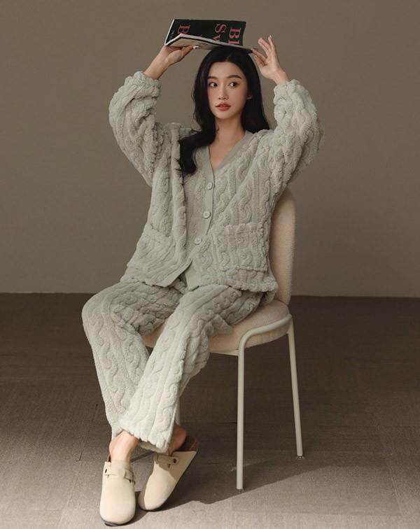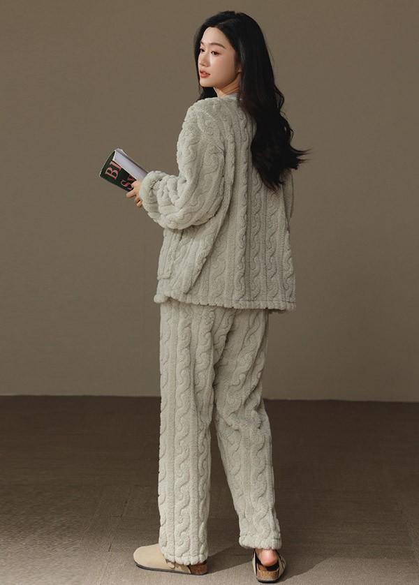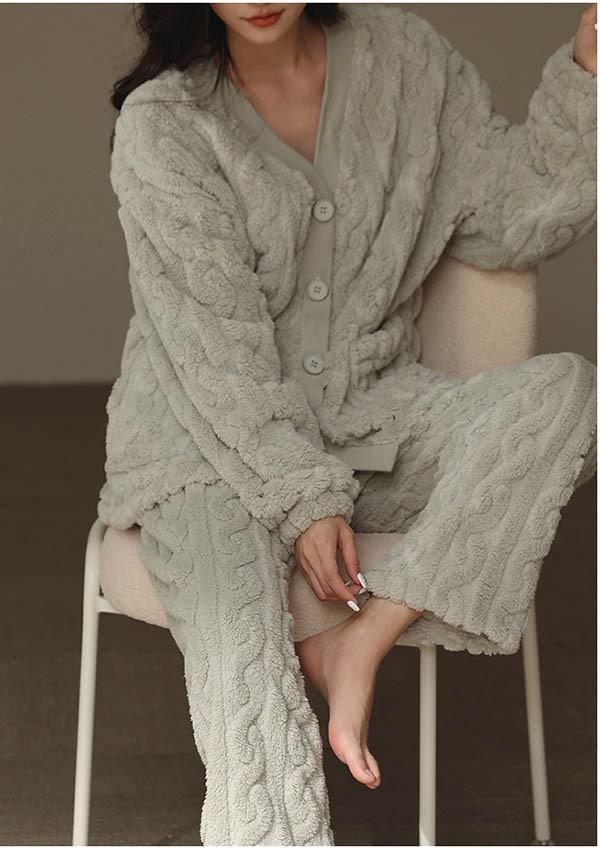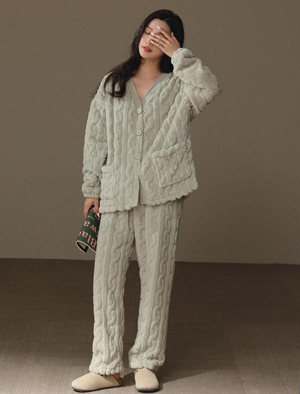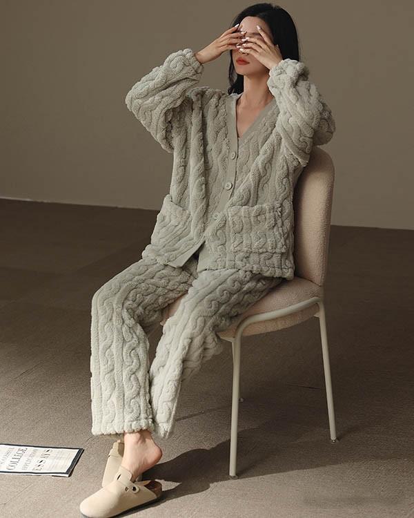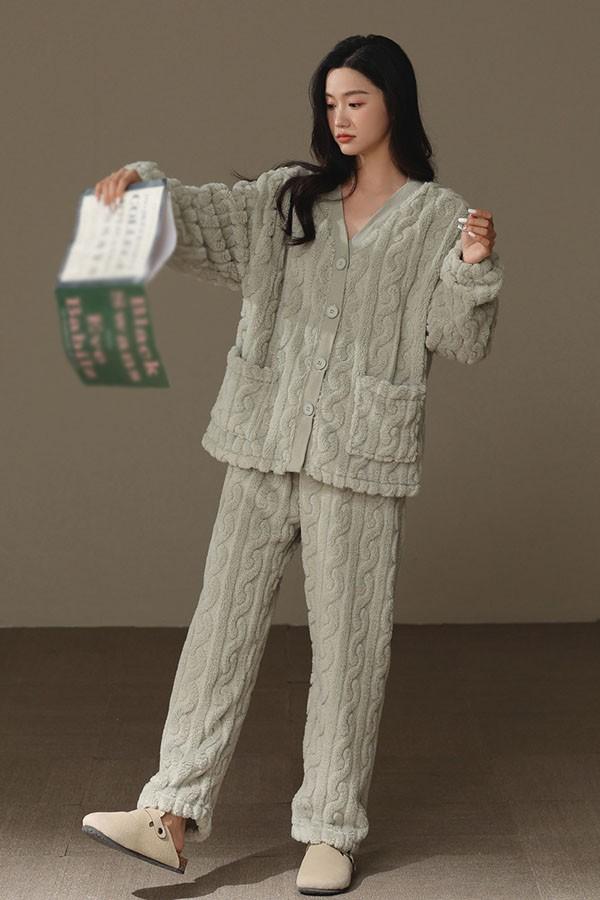 前開き 韓国 もこもこパジャマ レディース 暖かい フードなし モコモコ あったか 冬 かわいい 上下セット 長袖 ルームウェア 着る毛布 もこもこ パジャマ 部屋着 寝間着 おうち時間 女性用 ふわふわ プレゼント 結婚祝い dv105zezec6
