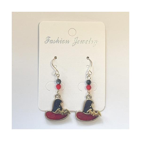 UVレジン ハンドメイドピアス ゴールドフレーム マジカルハット ブラック×レッドVer.(イヤリング変更可)