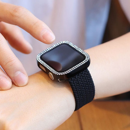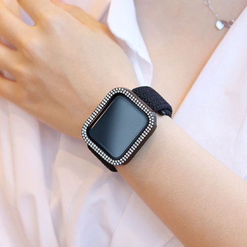EGARDENの「ガラスフィルム一体型ラインストーンケース」はApple Watch本体のディスプレイからエッジ部分まで全体を覆う、フルカバーケースです。また、ディスプレイ縁をラインストーンで飾る、ゴージャスでインパクトあるデザインです。