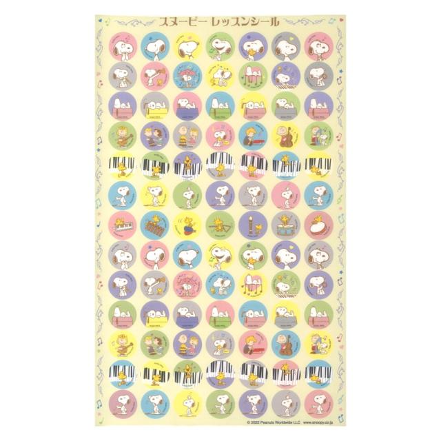 さまざまな表情のスヌーピーのイラストが楽しい音楽レッスンシールです。