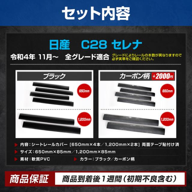 日産 C28 セレナ 適合 シートレールカバー [全2色:ブラック / カーボン柄]