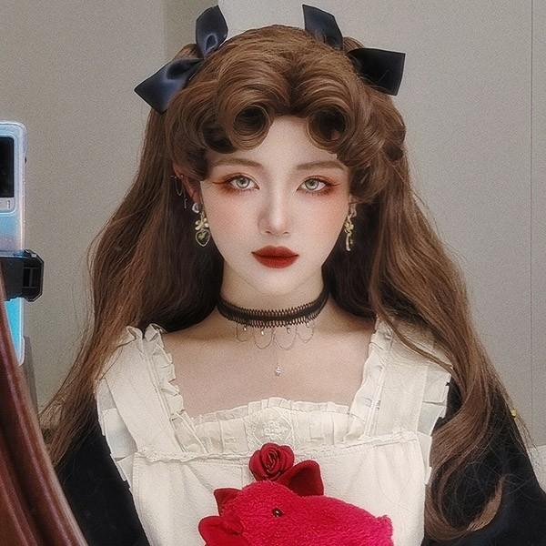 中世の貴族風 茶髪 巻き毛 フルウィッグ かつら 女性 長髪 超ロング ロング丈 ロングウィッグ ロングヘア ロリータ lolita 前髪あり 自然 可愛い キュート ウイッグ wig コスプレ 耐熱ウィッグ 小顔効果抜群 コスチューム 仮装 文化祭 学園祭 演劇 舞台 イベント 変装 女装 ブラウン dp088g5g5la