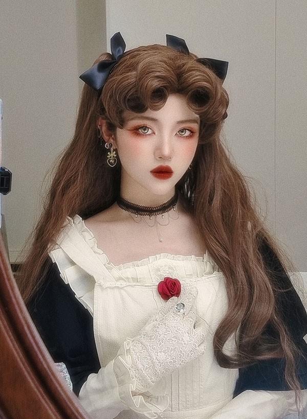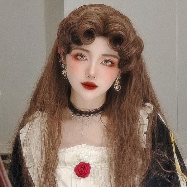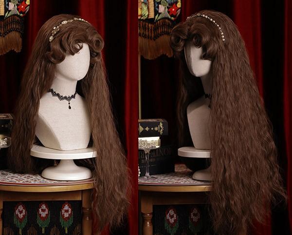 【送料無料】中世の貴族風 茶髪 巻き毛 フルウィッグ かつら 女性 長髪 超ロング ロング丈 ロングウィッグ ロングヘア ロリータ lolita 前髪あり 自然