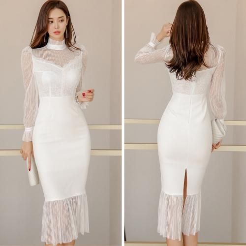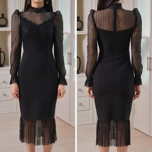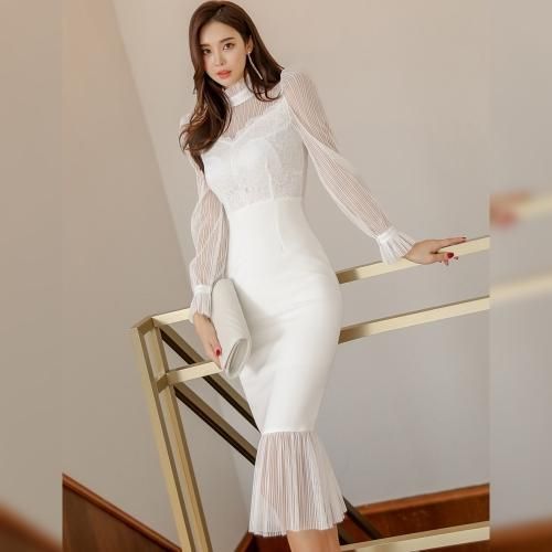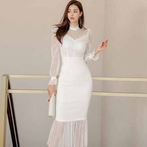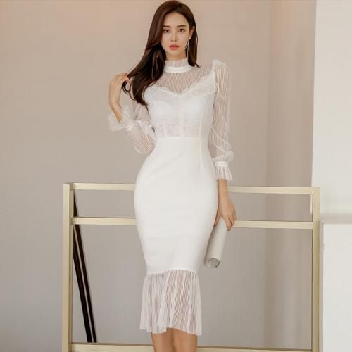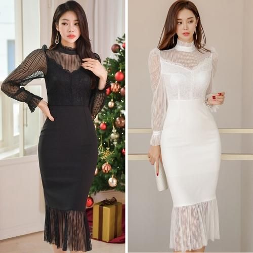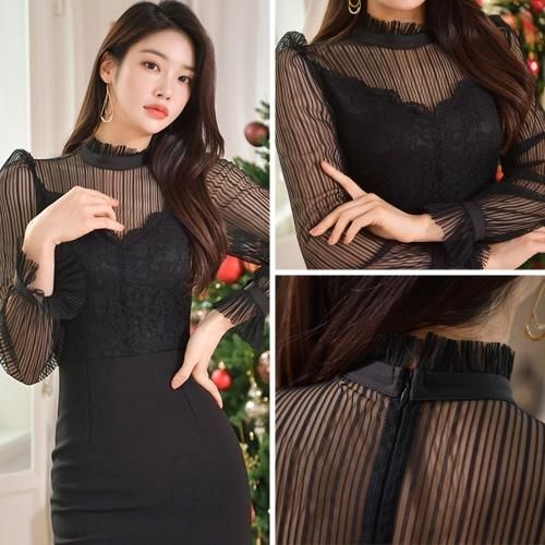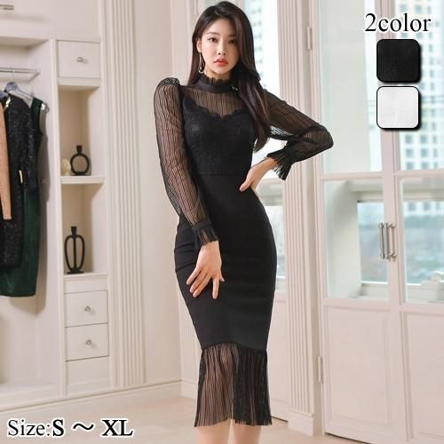【グラシア】 キャバ ドレス キャバドレス ワンピース ミディアムドレス トレンド クラシカル シフォン デコルテ ハイネック ビスチェ ビスチェ風 色香 大人 レース モード バラ シアー ブラック ホワイト S M L XL
