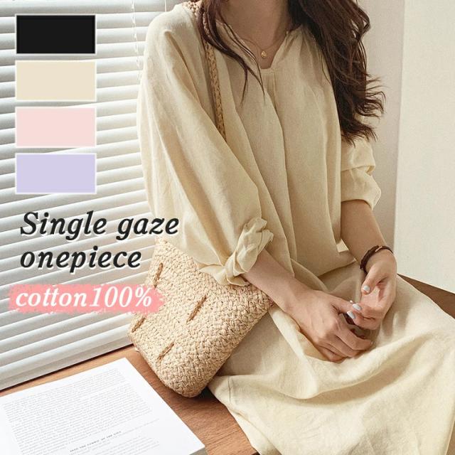 大きいサイズ ワンピース レディース ワンピース シングルガーゼ ガーゼ 綿100% 春 夏 秋 長袖 九分袖 ゆったり 敏感肌にやさしい 4color 部屋着 パジャマ ルームウェア ナイトウェア 柔らかいので肌にやさしい 優れた耐久性 おしゃれ