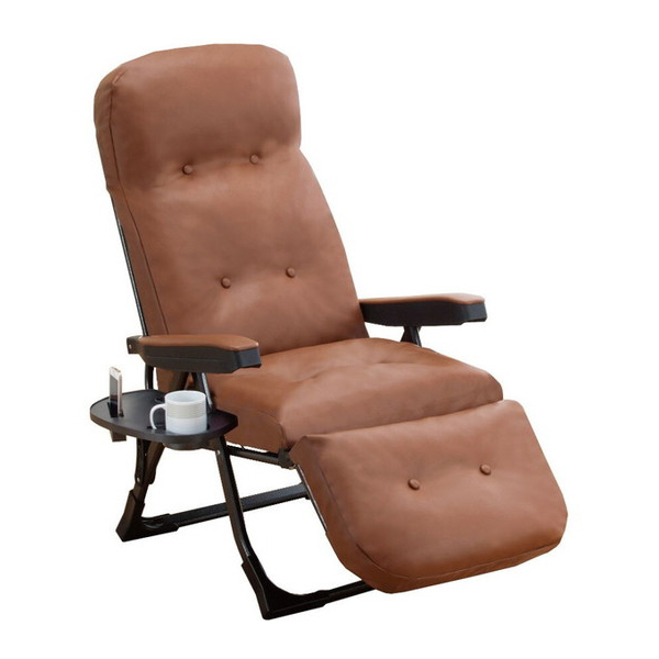 ★ 肘掛け部分を手前に軽く上げるだけで背もたれをリクライニング。背もたれの自然なカーブが背中と腰を楽に支えます。