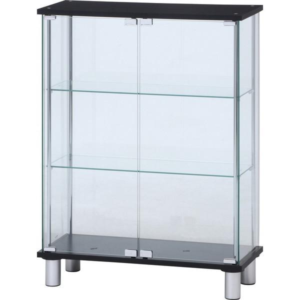 不二貿易 99486 ガラスディスプレイケース3段 ワイド BK メーカー直送