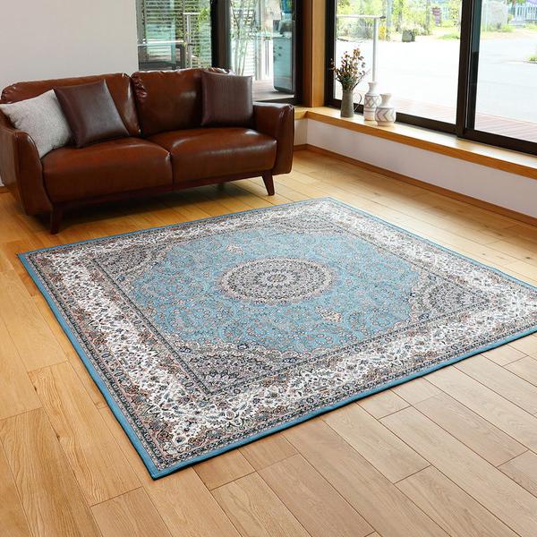 萩原 240613940 撥水 高級絨毯風 プリントラグ ターコイズ 約230×230cm メーカー直送