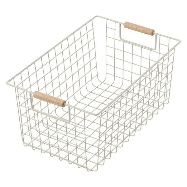 ワイヤーバスケットM(木柄) サンドホワイト N-8320 パール金属