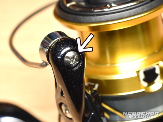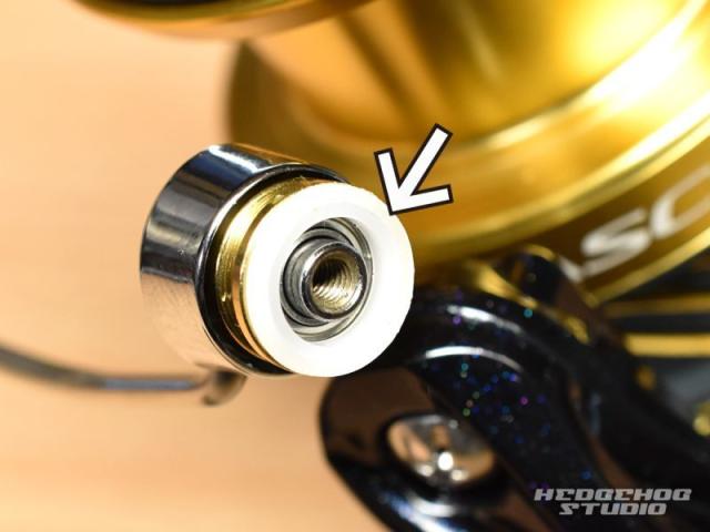 金属の純正スペーサーをリール本体の矢印部へ取り付けます。