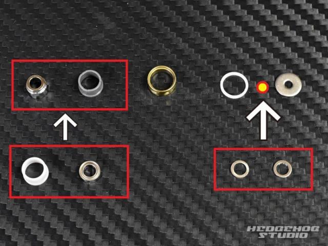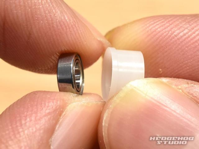 まず、キット付属のローラーブッシュの中にベアリングをはめ込みます。
