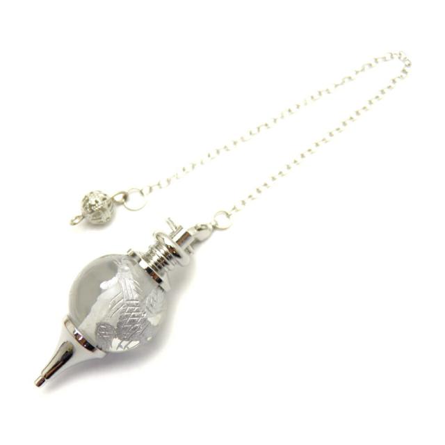 天然石 鳳凰 水晶 (銀)20mm ペンデュラム 1個売り 彫刻 パワーストーン ダウジング ヒーリング
