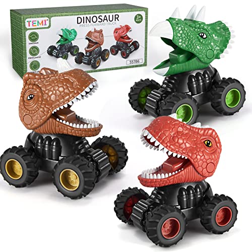 TEMI 3パック 恐竜の車のおもちゃ プレス&ゴーレース T-Rex恐竜トラック トリケラトプストラック プルバック