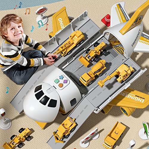 TEMI ストレージ輸送飛行機カーゴ 6つのフリーホイールダイキャスト建設車両付き